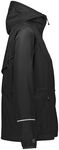 Stay warm and dry in the Ladies Packable Full Zip Jacket from Holloway. This women's water-resistant jacket features an adjustable hood with inside concealed cord locks, a reflective trim, and back vent with adjustable closure for full decoration access. Spandex bound cuffs and an adjustable elastic hidden drawcord at waist and bottom make sure you keep the warmth in and the rain out.