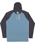 4.5 oz., 60% combed ringspun cotton/40% polyester fine jersey ; fit: adult unisex - true to size; contrast three-piece hood construction; contrast cotton-hand flat braided drawcord; contrast raglan long-sleeve; Easytear™ label; sideseam construction; double-needle hemmed sleeves and bottom; drop tail with side vent construction;